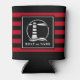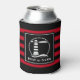 Classic Lighthouse with your Personalised Name or Boat Name on a Navy Red and Black striped Can Cooler.