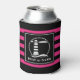 Classic Lighthouse with your Personalised Name or Boat Name on a Pink and Black striped Can Cooler.