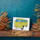 Cruise on your next road trip or down to the beach in this classic lime green van. Drawn in fun cartoon style.