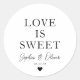 Classic LOVE IS SWEET Heart Wedding Names Favour Round Sticker
