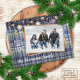 Unique, classic, trendy, pretty and decorative Holiday card. Cute WITH LOVE FROM text and room to customise or personalise with a photo and names (or family name) of your choice on a rustic country cottage style violet purple, dark blue, teal green and grey coloured tartan plaid check pattern. And a customisable season greeting poem on the backside of the card.