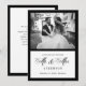 These elegant, old money style wedding announcements feature a dramatic black border and a black and white text design. There is a mix of classic black text and modern calligraphy that says the new "Mr. & Mrs." for a classy and minimalist design perfect for your timeless, formal wedding. Add your favourite wedding photo. The back of the invitation has a white centre area where you can add more details about your wedding or elopement.