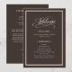 These elegant, simple wedding welcome programs feature an ivory cream border and a dark, espresso brown background. There is a mix of classic text and modern calligraphy for a classy and minimalist design perfect for your timeless, formal or rustic country western wedding.