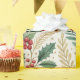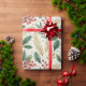 Elegant Christmas holly pattern in festive shades of green, red, and gold, ideal for creating beautifully wrapped gifts.