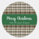 Classic Merry Christmas Plaid Green White Classic Round Sticker