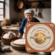 Kraft label with a dainty multi-coloured ringed border in buttermilk and brown with a seasonal dark orange frame. Product name in a decorative grunge font. Mincemeat pie illustration. Your name or business on a pretty teal banner. Your ingredient list or desired text on bottom perimeter of label in curved text. This label is sure to bring a smile to the faces of your guests (the ones you are glad it's meatless - and the few who were really hoping for mutton and pigeon !) Of course, you can also use this label for any old-fashioned pie with a closed crust.