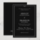An elegant, classic yet modern and minimalist style, black and white wedding invitation. A white border surrounds the details of the invite, while the couple's initials and an ampersand sits in the center at the top.