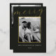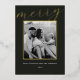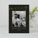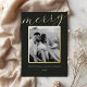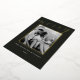 Classic minimalist two-sided family photo Christmas cards featuring gold foil frame on dark colour background with personalised family photo and holiday messages.