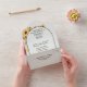 Introducing our classic all-in-one invitation featuring an arch with sunflower accents. This invitation is a simple pale green background with dark brown text and is perfect for couples seeking a sleek, minimalist and classic aesthetic for their special day. Included is a traditional paper RSVP, with the all-in-one design, guests can easily tear away the RSVP section and send it back. Additionally, we've provided space for a website and email information for RSVPs, ensuring a seamless and convenient RSVP process.