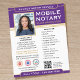 Professional Notary Public flyers with a profile photo, logo and accreditation symbols. This editable template can be personalised with a name, qualifications, area served, contact details and a list of services. Add your company logo and certification marks for branding, and connect clients to your website with a scannable QR code, and to schedule appointments. A classic blend of traditional and contemporary style, creating an elegant and friendly appearance, with fully customisable text to fit your business brand. Perfect for a Notary Public, Loan Signing Agent, Certified Notary Trust Delivery Agent (CNTDA), Mobile Notary, Apostille or other legal role — an effective way to advertise your business! Printed colours: dark pink, plum, white and gold colour. Shop the online collection for more popular product ideas and supplies designed for notaries!