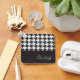 This design features a classic black and white houndstooth pattern. Combined with your own personalised text, this composition creates a modern chic and unique square keychain.