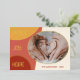 Unique, classic, trendy, pretty and decorative Holiday card. With classy PEACE HOPE JOY text, and room to customise or personalise with a family name or individual names, and a photo of your choice on ochre mustard yellow, dark and light coral coloured real gold foil circles pattern.