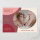 Unique, classic, trendy, pretty and decorative Holiday card. With classy PEACE HOPE JOY text, and room to customise or personalise with a family name or individual names, and a photo of your choice on dusty blush pink, mauve taupe and wine red coloured real rose gold foil circles pattern.