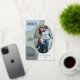 Unique, classic, trendy, pretty and decorative Holiday card. With classy PEACE HOPE JOY text, and room to customise or personalise with a family name or individual names, and a photo of your choice on silver grey, pale winter blue, pastel and dark sage green coloured real silver foil circles pattern.