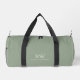 This stylish, modern personalised duffel bag features a classic serif monogram and sans serif name in white on a sage green background.