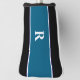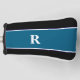 This stylish golf club putter head cover features a classic monogram and blocks of colour. A perfect gift for dad or any man who golfs. Black, blue, and white with white text, you can edit the monogram to personalise it by using the editing tool in the listing. It's a stylish, modern, and minimalist gift for a golfer.
