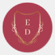 Classic Monogram Crimson Red Golden Round Sticker