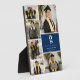 Classic Monogram With Graduation Cap / Mortar Board, Dark Navy Blue Color Block Six Multi Photo Collage Modern Graduation Easel Plaque.