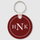 Monogram keychain with a classic circular design and customizable initials. With white typography lettering, you can add you own information. A simple gift for someone special.