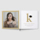 Simple Classic Monogram Small Letter 'k' With Black Graduation Cap Grad Party Guest Book. The back features a photo of the graduate and a meaningful quote.