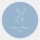 Classic Monogram Leaf Wedding Dusty Blue Envelope Classic Round Sticker