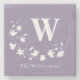 Classic Monogram Name Lilac Floral Wreath Custom Stone Coaster