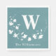 Perfect for newlywed and wedding gifts, anniversary parties, and more, these beautiful monogrammed napkins feature your initial and family last name with a classic rustic botanical wreath design in teal. Easily change the background colour using the customise further tool.