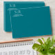 Classic monogram teal wedding return address envelope.