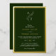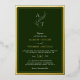 Deep forest green timeless and stylish monogram leaf wedding invitation with real foil gold border and foil script.