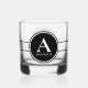 Classic Monogram Whiskey Glass with circle Monogrammed Initial and Last name below the letter.