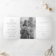 Traditional and classic black and white trifold wedding invitation featuring a wedding crest with your monogram inside of a wreath along with your names in a script / calligraphy. The middle has your favourite photo. This simple yet elegant trifold invitation is great for a formal wedding.