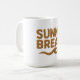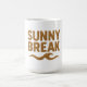 Bring the sunny break vibe home! ☀️ This 15 oz classic mug features a distressed, golden-brown text design and a wave graphic. Perfect for coffee, tea, or hot cocoa. Customize it now with your own text, names, or date for a unique gift!