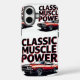 This striking design showcases the phrase Classic Muscle Power in bold 1970s typography, accompanied by a dynamic illustration of a classic muscle car, featuring a rich colour palette and clean lines. It is perfect for car enthusiasts and vintage lovers alike.