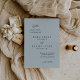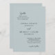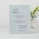 Elegant wedding invitation featuring a simple, minimal typographic design. Accents words are in a script typography and the layout is offset for a modern touch. The template features text on the back for an all in one invitation, or you may delete the text to leave the back blank. The colour theme is fog (blue grey) and may be changed in the design editing tool. This design is great whether you are having an informal or formal wedding.