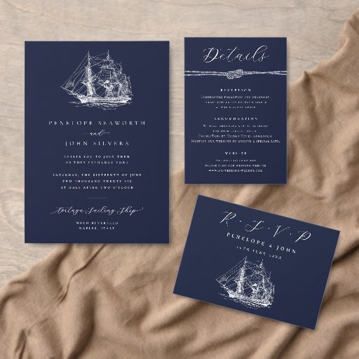 Elegant Navy Blue Nautical Ship Wedding SuiteDesigned by Jessica Amber Duggan