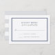 Designed to coordinate with our Ocean Tides wedding invitation, this simple and chic wedding response card features a double border of rich nautical navy blue with elegant block and script lettering in classic grey and contrasting deep marine blue. Cards reverse to soft pale grey and white stripes.