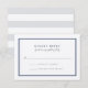 Designed to coordinate with our Ocean Tides wedding invitation, this simple and chic wedding response card features a double border of rich nautical navy blue with elegant block and script lettering in classic grey and contrasting deep marine blue. Cards reverse to soft pale grey and white stripes.