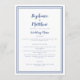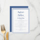 A simple and elegant wedding menu featuring a crisp double frame border in classic navy blue on a clean white background. “Wedding Menu” appears in refined script above a minimalist 5×7 layout that highlights each course with traditional typography. The solid classic blue back adds a timeless, modern touch to rehearsal dinners or formal reception tables. Personalise with your event wording for a polished, coordinated presentation.
