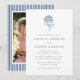 Announce your wedding in style with this classic navy blue hydrangea wedding invitation, designed with a timeless and refined aesthetic. This elegant wedding invitation features a hand-drawn hydrangea illustration in a rich navy blue tone, paired with sophisticated serif typography and a delicate script accent for a look that feels both traditional and modern, while the clean layout keeps your wedding details easy to read and beautifully presented. The back of the invitation includes a framed photo area where couples can showcase an engagement photo within a crisp white border set against a navy blue and white striped background, adding a personal touch while maintaining a polished, tailored look. Perfect for formal weddings, estate weddings, traditional ceremonies, and fall or winter celebrations, this navy blue hydrangea wedding invitation is ideal for couples drawn to classic, old money, and quiet luxury wedding styles, and can be personalized with your wording and photo to create a meaningful and timeless design that coordinates seamlessly with a classic or traditional wedding theme.