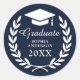Classic Navy Blue Laurel Wreath Grad Cap Emblem Classic Round Sticker