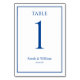 A classic navy blue and white wedding table number card that can be customised with any table number. The graphics appear on both sides of this card.