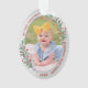 The ornament in oval shape has a classic silver frame adorned with Christmas plants and ribbon to display your own special memory of your new baby. The bright and shiny silver border encircles your photos. The holly, greenery and silk ribbon complete the whole design with a joyful atmosphere of the holiday season. On the back side, the heartwarming quote on the edge of the frame, "Peace, joy and love, now and always!" expresses your deep love and wishes for your precious little one. Easily place your own memorable photo in place of the template photo as well as the name and year to make your own ones, and send it to your family and friends to celebrate the baby's first Christmas!