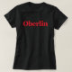 Show your Obie pride with this classic fit women's t-shirt in black with the bold Oberlin in red.