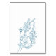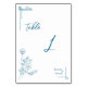 Classic elegant floral design table card with a simple border. This drawing is in ocean blue color on a white background.