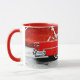 This cool mug features my original photograph of a 1955 red Chevy Bel Air classic car, the whole profile of the car wraps around the mug. Image was processed in an artsy poster style. The handle and inside of the cup are red to complement the artwork.