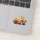 A retro-inspired cartoon car in vibrant orange, featuring curvy body lines, oversized chrome wheels, and bold outlines. A playful vintage-style vehicle design for fans of stylized automotive art.