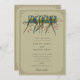 This wedding invitation presents a timeless design that captures both the elegance of vintage aesthetics and the serene beauty of nature. The front side features a sophisticated khaki background bordered by intricate corner designs in a complementary taupe, creating a refined frame for the central artwork. Two parrots, resplendent in shades of olive green, golden yellow, and touches of navy blue, perch gracefully amidst a spray of florals in hues of blush, peach, and ivory. The accompanying navy blue oval is subtly monogrammed, adding a personalised touch. On the reverse, a harmonious scene unfolds with multiple parrots on a perch, their vivid plumage set against a symphony of the same soft, floral palette. The invitation is completed with elegant script and ornamental details, making it an ideal announcement for a couple's forthcoming nuptials.