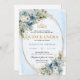 Ideal for classic, modern, garden, or elegant Quinceañera themes, this invitation combines delicate blue hues with warm gold details to achieve a look that feels both sophisticated and youthful. The greenery and eucalyptus bring freshness and balance, while the gold accents add just the right amount of sparkle for a meaningful 15th birthday celebration. Whether you are planning a formal Quinceañera, a traditional fiesta, or an intimate family gathering, this invitation sets a beautiful and memorable tone.