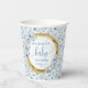 Classic pastel blue watercolor flowers gold party paper cups