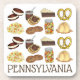 Illustration features classic Amish and Pennsylvania Dutch food favourites including: whoopie pies, chicken pot pie, soft pretzels, gingersnap cookies, chow chow relish, apple butter, shoo fly pie, and apple dumplings. Great for your favourite foodie, or any fan of PA Dutch cuisine!